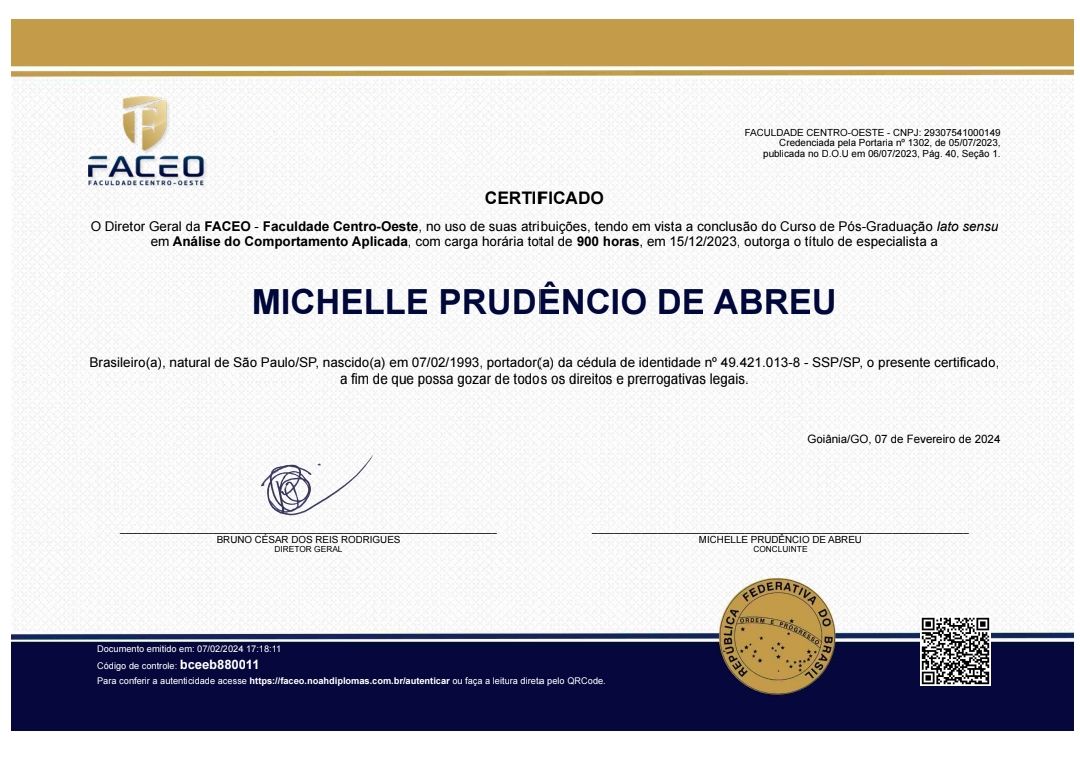 Psicóloga, formada pela Universidade Paulista e especialista em análise do comportamento aplicada pelo Instituto de Educação e Análise do Comportamento.